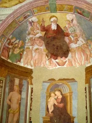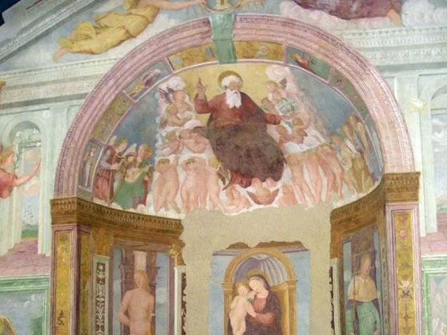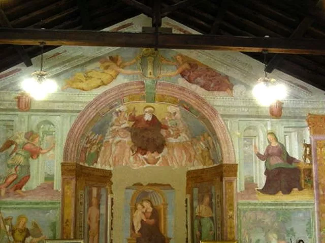 Un tempo le pareti pare fossero completamente affrescate, oggi si possono ammirare solo quegli dell’Abside ed alcuni resti sulle pareti laterali datati al 1700.