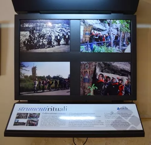 la musica, il canto e gli strumenti nella religiosità popolare usati in occasioni di specifici eventi del calendario liturgico (raganella, tabella, crotalo a tavolette, conchiglia). Al pellegrinaggio della SS.ma Trinità è dedicata una buona parte di questa sezione arricchita da documentazioni fotografiche, filmati e riproduzioni sonore;