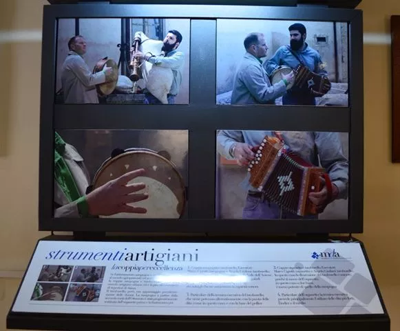 gli strumenti artigiani (organetto, tamburo a frizione, triangolo e tamburelli) di uso frequente nelle feste ed animazioni musicali del tempo libero e nella danza;