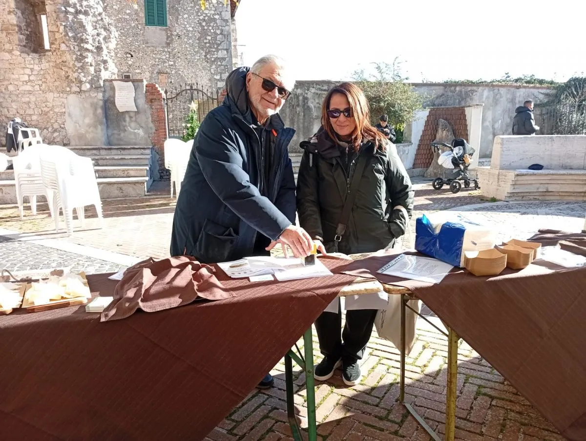 La piazza di San Nicola, al centro del borgo medievale di Acuto, ci ha ospitato. Dalla piazza si gode di un paesaggio meraviglioso. Nella piazza il Comune ha istallato tre gazebo. Il ristorante La Saporita ha allestito i tavoli posti sotto i Gazebo con vino Cesanese, olio extra vergine d'oliva, pane casareccio. fettine di formaggio e le famose cartichiozze. Dalle 11 si sono accolte le famiglie che si sono soffermate nella piazza. Qualcuno ha preso una credenziale e si è fatto apporre il timbro che il sindaco aveva portato con sé. Una bambina figlia di una coppia in vacanza ad Acuto ha scritto il suo nome sulla credenziale, prima di portarla con sé. Un trio musicale ha suonato allegramente. E' passato il gruppo dei ciclisti. Ci ha salutato e ha continuato il giro sulla ciclabile. Sono tornati alle 13 e hanno condiviso gli assaggi. Hanno atteso l'uscita della pentola con la pasta e fagioli e l'hanno mangiata con gusto. L'occasione è servita per approfondire le finalità strategiche della manifestazione e prendere l'impegno a lavorare per la ciclabilità del percorso che arriva fino a San Vettore del Lazio per sostenere l'accreditamento della variante della Francigena nel sud. E' arrivato il Commissario della Comunità Montana dei Monti Ernici e ci ha dato una buona notizia: la ciclabile, a breve, arriverà fino a Frosinone. Si sono assunti degli impegni per verificare la ciclabilità della Francigena nel Sud sull'asse Casilina. Si è formulata l'ipotesi di riunire tutte le Associazioni ciclistiche presenti su tutto il territorio. Forse il 2 di Maggio, nella giornata mondiale della bicicletta.